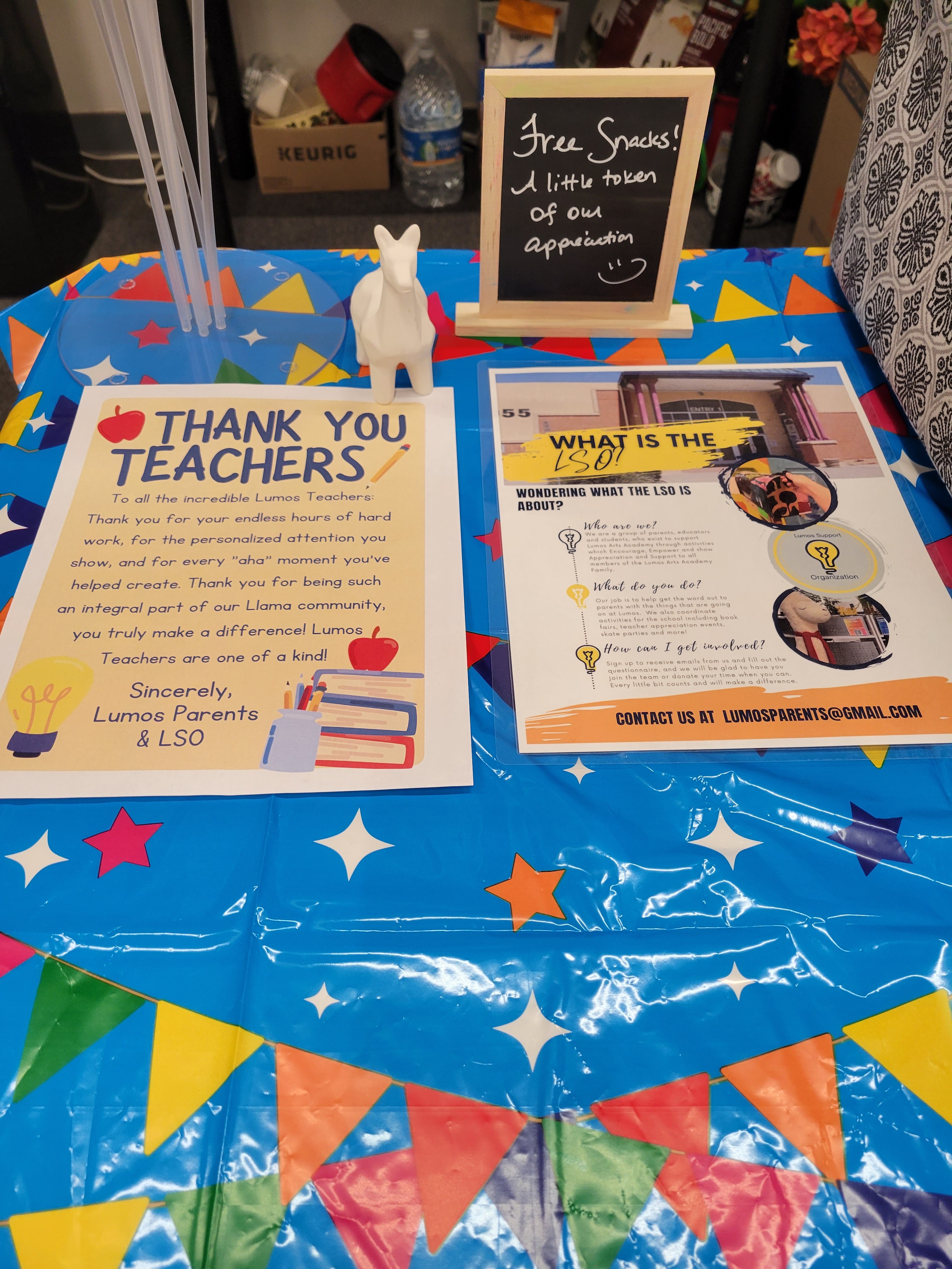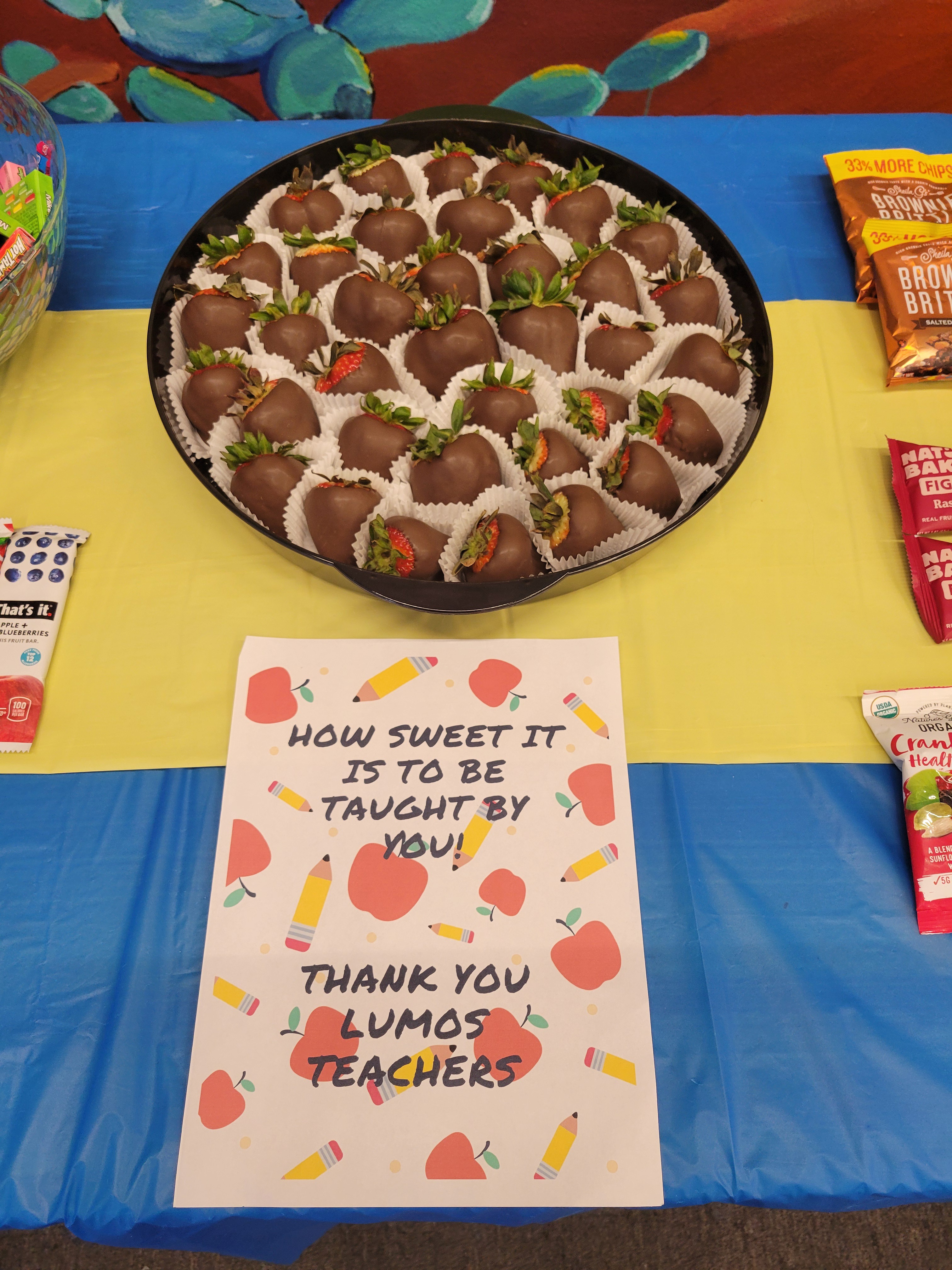 Thank you Parents for helping us spoil the teachers this last week for Teacher Appreciation Week! We were able to gift each teacher with an Amazon gift card, create a grab & go snack bar and treat everyone to chocolate covered strawberries. The office staff said that the teachers all raved about the goodies and felt so loved and appreciated by their Llama Parents.